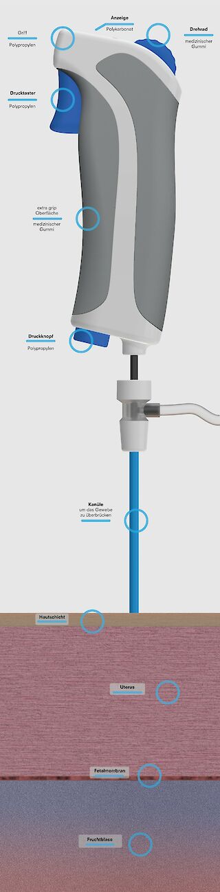 Minimalinvasive Operationen retten Leben – in der Fetoskopie auch ungeborenes. Ein solcher Eingriff birgt aber auch ein hohes Risiko für eine Frühgeburt, da ein Loch in der Membran der Fruchtblase zurückbleibt. Das Verschliessen und Stabilisieren der Membran kann die Gefahr einer Frühgeburt stark senken. Dank AmnioFix lässt sich die Membran nach der Operation effizient und dauerhaft verschliessen.