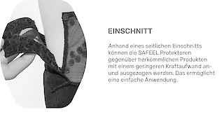 Mit zunehmendem Alter oder aufgrund chronischer Krankheiten wird ein Sturz zum Risikofaktor. Verletzungen und ihre Folgen können fatal sein. SAFEEL beugt diesen Auswirkungen vor. Die medizinischen Protektoren schützen Hüfte, Knie und Ellbogen und bieten sturzgefährdeten Personen Sicherheit im Alltag. Dank geringem Kraftaufwand beim Anziehen und einfacher Anwendung bleiben die Nutzer*innen selbständig und sind nicht auf die Hilfe Dritter angewiesen. Das Design von SAFEEL geht auf die Bedürfnisse der Betroffenen ein, fördert die Lebensqualität und unterstützt das Selbstvertrauen.